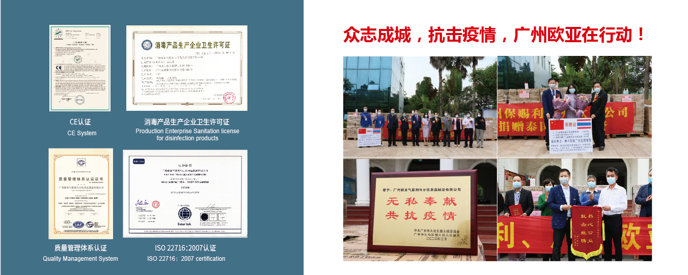 廣州歐亞氣霧劑與日化用品制造有限公司成立于2008年,是一家由廣州保賜利化工有限公司創(chuàng)始人投資成立的港商獨(dú)資企業(yè),主要生產(chǎn)制造個(gè)人護(hù)理用品、衛(wèi)生消毒產(chǎn)品及家庭護(hù)理用品的企業(yè)。