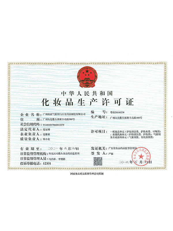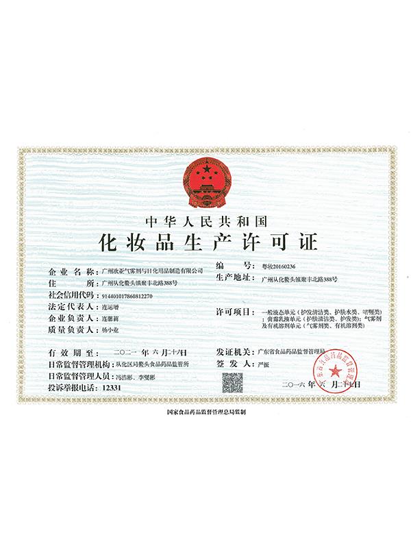 • 化妝品生產(chǎn)許可證
