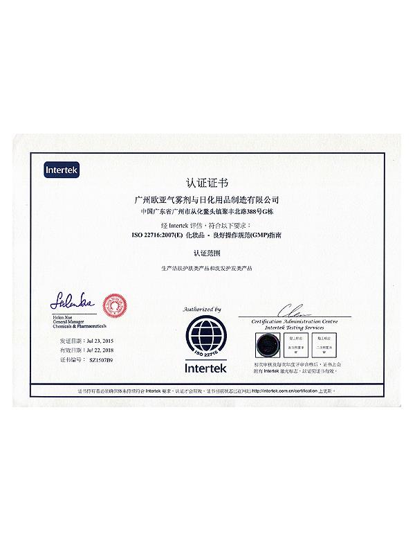 • ISO 22716:2007認(rèn)證