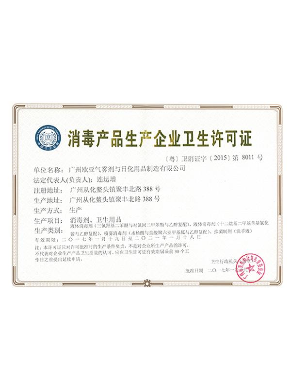 • 消毒產(chǎn)品生產(chǎn)企業(yè)衛(wèi)生許可證